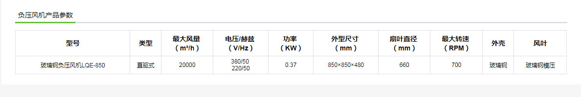 玻璃鋼負(fù)壓風(fēng)機LQE-850